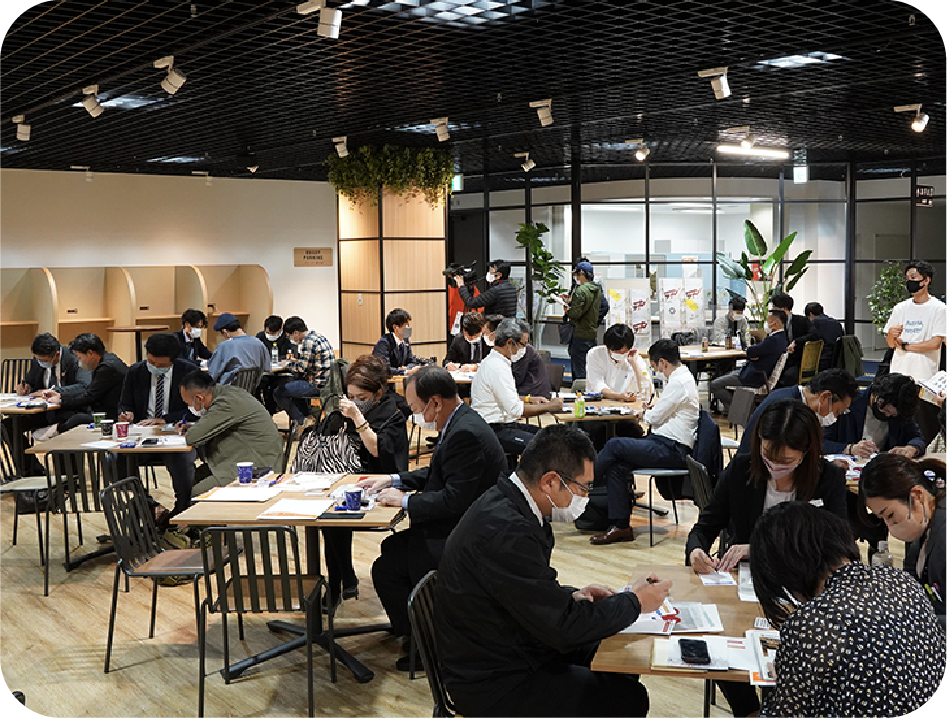 参加者とクリエイターがいくつかのチームになって地域のミリョク発信のためのクリエイティブなアイデアを生み出すワークショップ